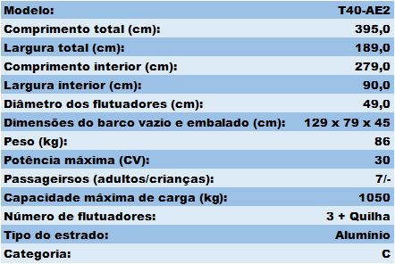 Estrado em alumínio para 7 pessoas equipado com motor BF15